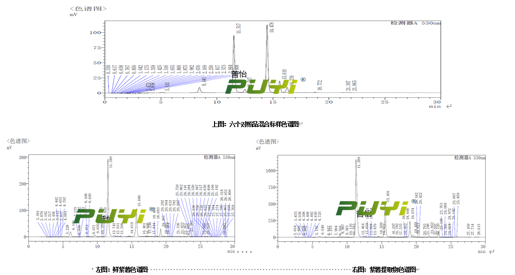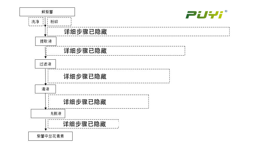 1.2、通過對紫薯中花青素中理化性質(zhì)的掌握,結(jié)合高效液相色譜對其中指標成分的進行含量監(jiān)控,篩選出一條或兩條適合擴大化生產(chǎn)的提取,純化工藝,作為中試放大工藝路線。
